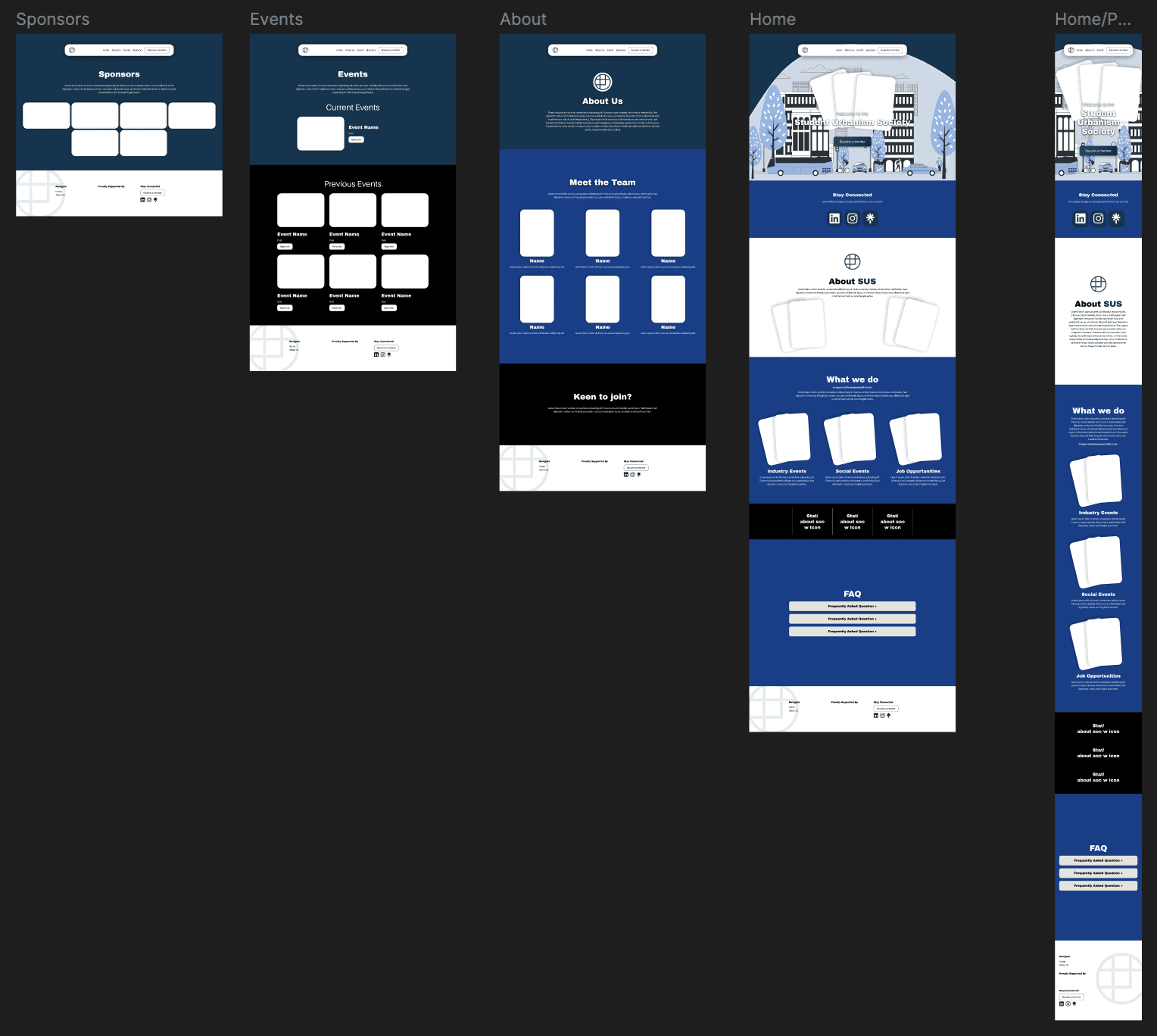 Upon proposing the site, stakeholders were satisfied with the proposed design but noted a lack of available photos, as the society was newly formed. I accounted for this by substituting icons for images. After several iterations and feedback loops, the site was finalised.